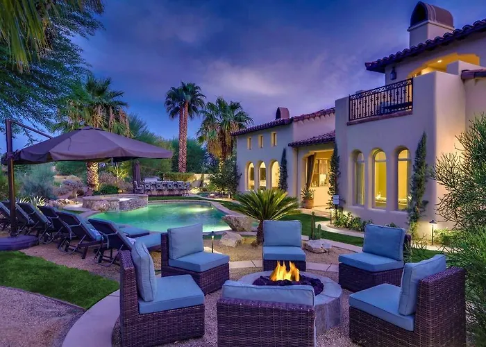Dotata di servizi per la preparazione di tè/caffè, la cucina completamente attrezzata dispone anche di un tostapane, un forno e un piano cottura. Gli ospiti possono raggiungere l'aeroporto Internazionale di Palm Springs in 40 minuti di auto dalla villa. Gli ospiti apprezzeranno le attività di bowling, mini golf e ping pong organizzate in loco.